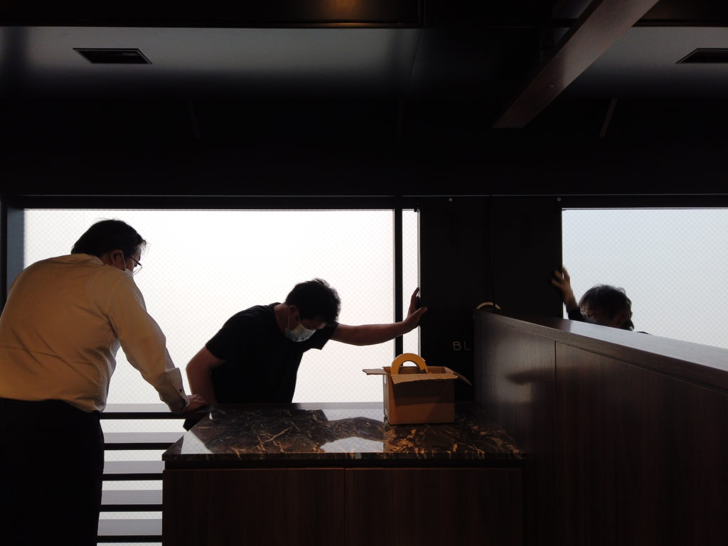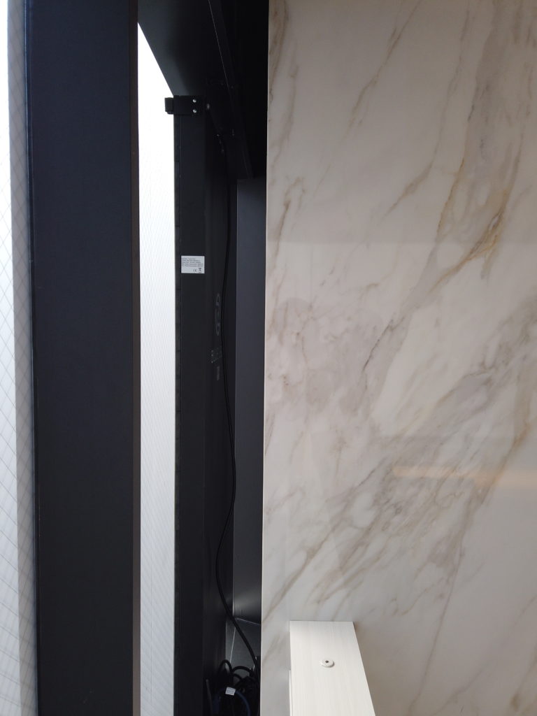 設置場所は柱とガラスの間、とても狭いスペースで、